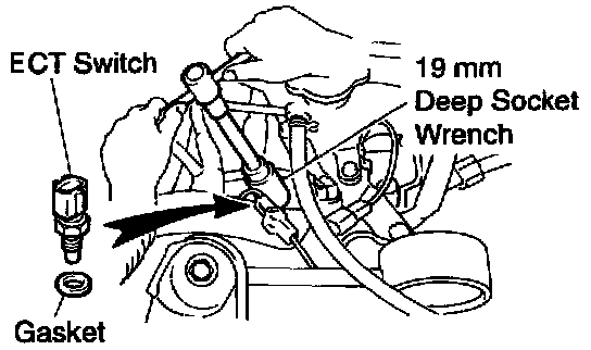 (b) Using a 19 mm deep socket, install the ECT sensor.