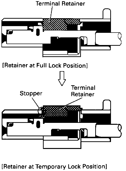 3. Insert the terminal with terminal retainer in the temporary lock position.