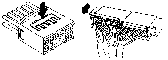 Insert the special tool into the terminal retainer access hole (Mark) and pull the terminal retainer up to the temporary lock position.