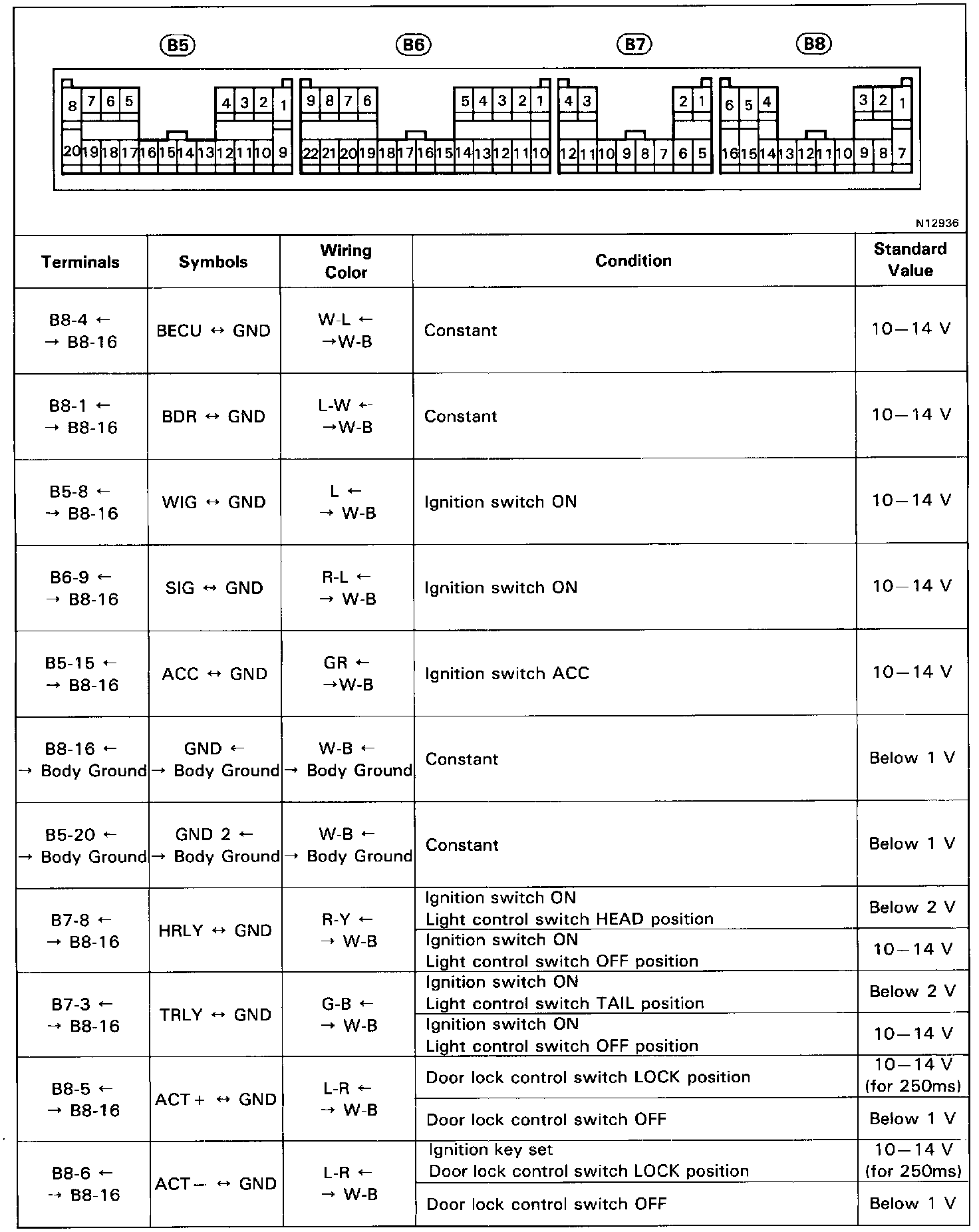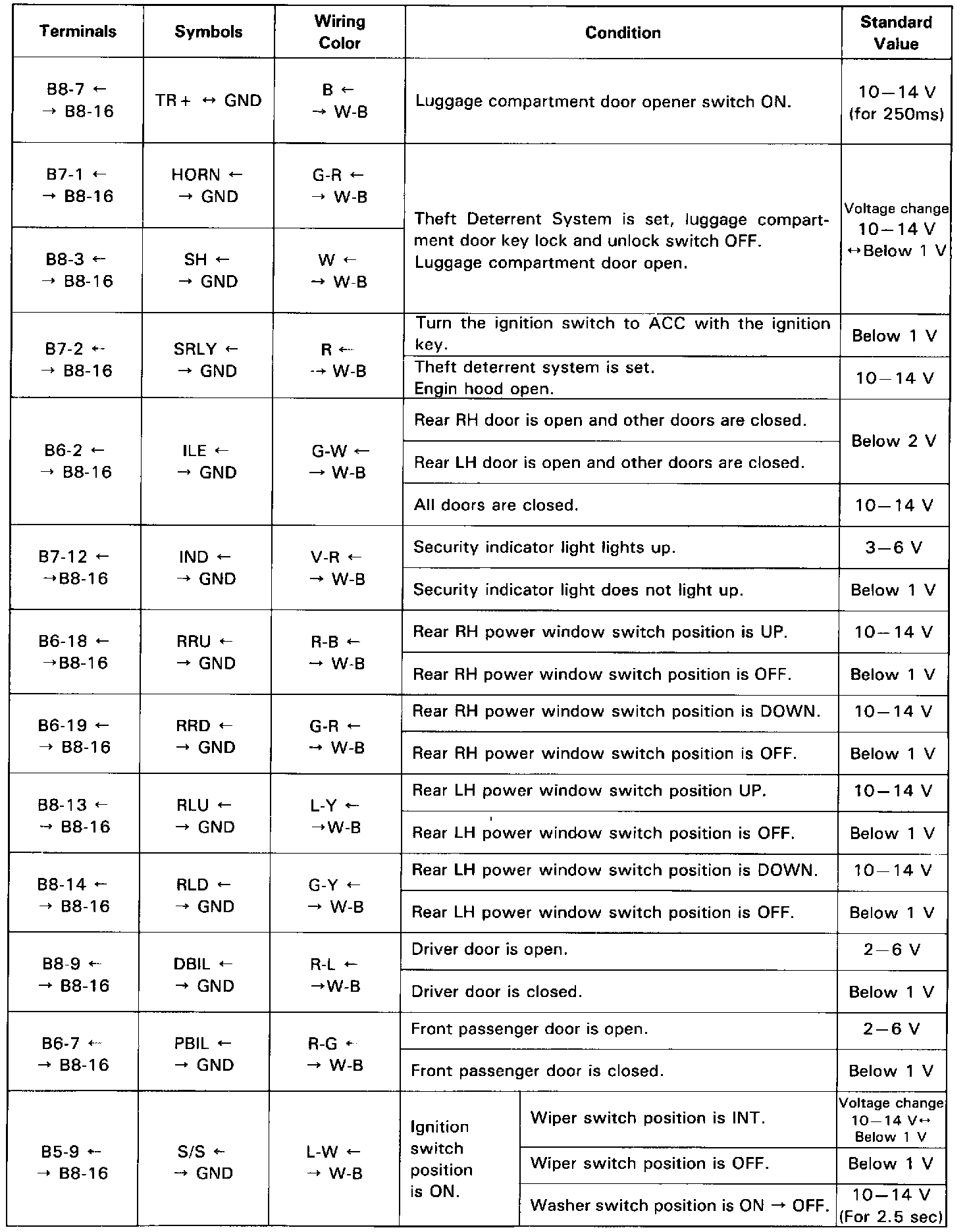 Pinout Values and Diagnostic Parameters
