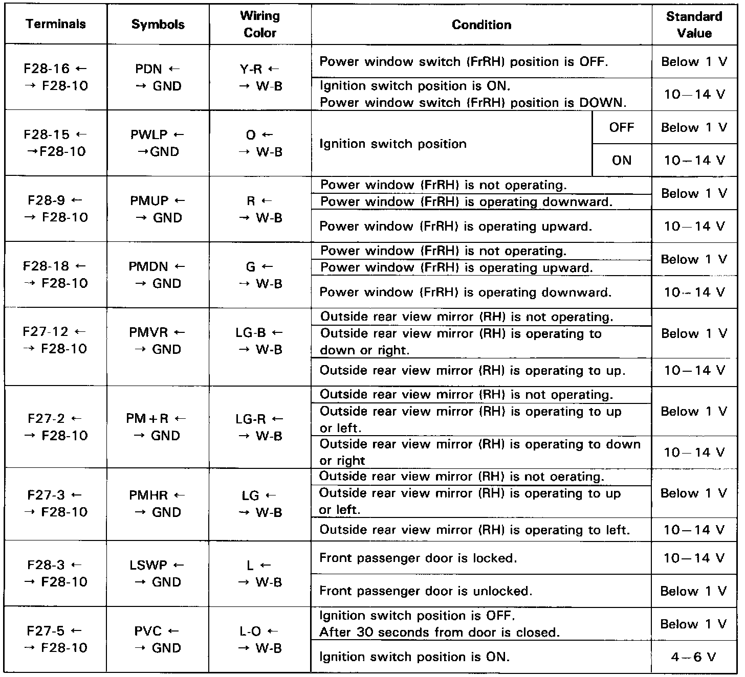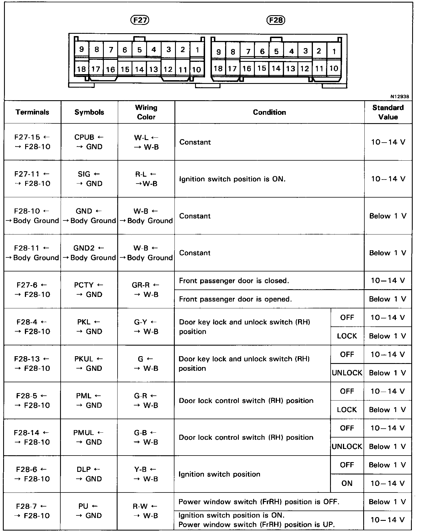 Pinout Values and Diagnostic Parameters
