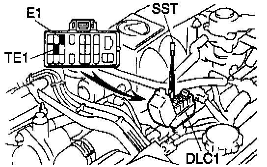 (a) Using a jumper wire (or SST 09843-18020), connect terminals TE1 and E1 of the DLC1.