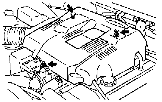 - Remove the 2 cap nuts, bolt and V-bank cover.