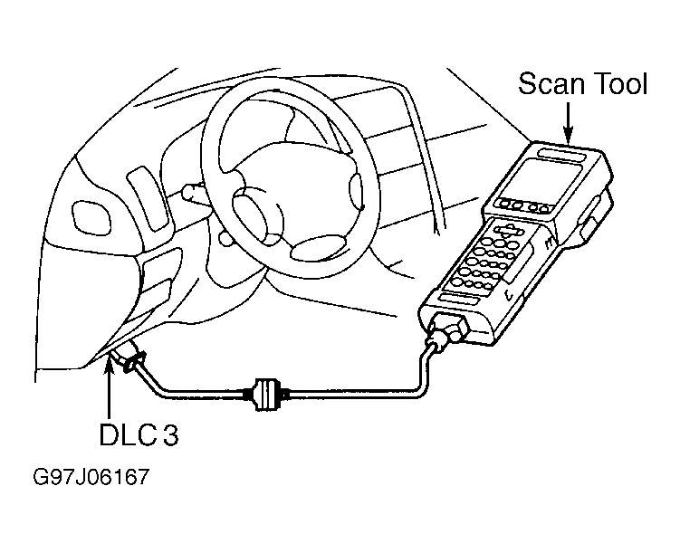 1. Connect scan tool to Data Link Connector (DLC) No. 3. See Fig 1. Turn ignition on. DO NOT start engine.
