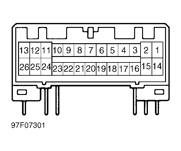 - Remove cruise control ECU, but leave electrical connector(s) attached. Turn ignition on. Connect voltmeter between terminal no. 19 (+) of cruise control ECU connector and body ground. See Figure.