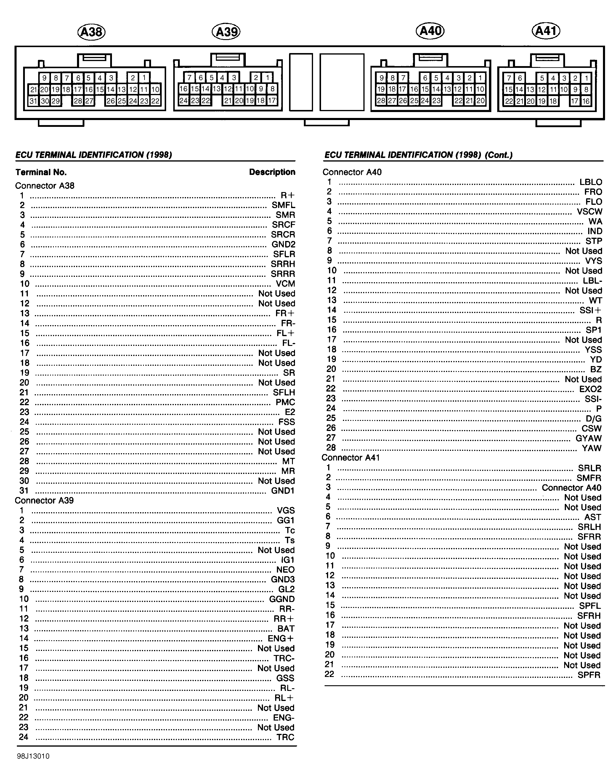 ECU TERMINAL IDENTIFICATION (1998)