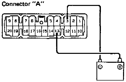Connect the positive (+) lead from the battery to terminal A-13 and the negative (-) lead to terminal A-3 and then check that the illuminations light up.