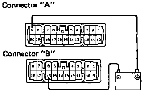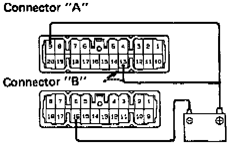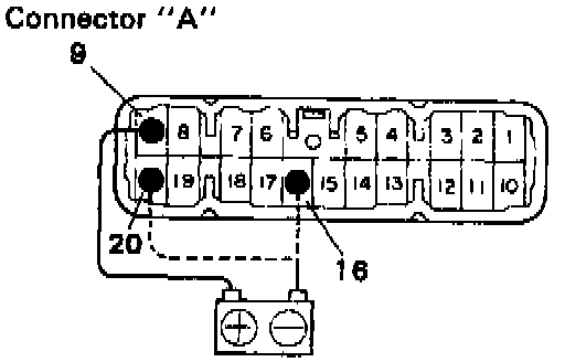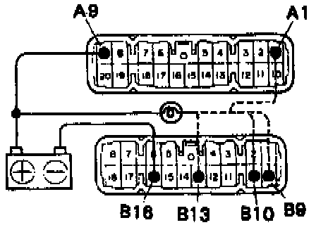 a. Connect the positive (+) lead from the battery to terminal A-9 and the negative (-) lead to terminal B-16.