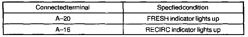 d. Connect the positive (+) lead from the battery to terminal 131 through a 1.4 W test bulb and then check that the indicator and test bulb light up, while switch is pressed. If operation is not as specified, replace the A/C control assembly.
