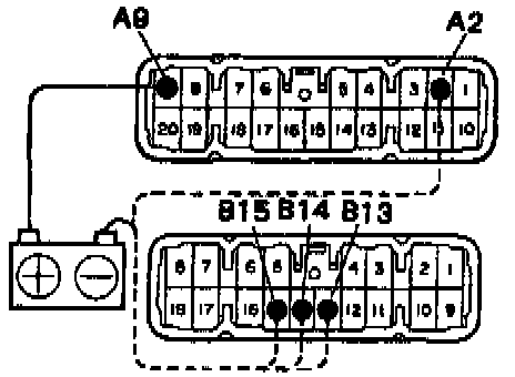 a. Connect the positive (+) lead from the battery to terminal A-9 and the negative (-) lead to each terminal, as shown in the chart below.