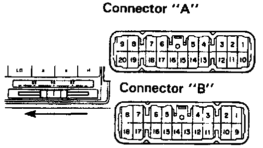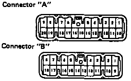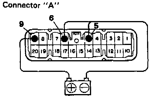 a. Connect the positive (+) lead from the battery to terminal A-9 and the negative (-) lead to each terminal, as in the chart below.