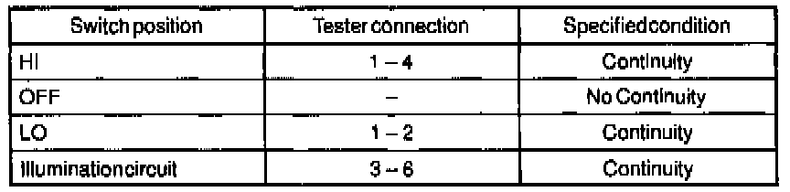 If continuity is no as specified, replace the switch.