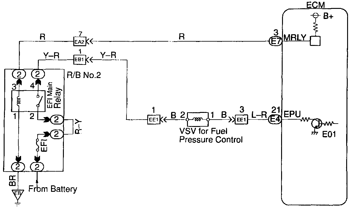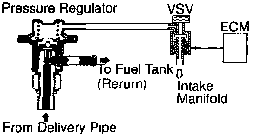 The ECM turns on a VSV (Vacuum Switching Valve) to draw the air into the diaphragm chamber of the pressure regulator if it detects that the temperature of the engine coolant is too high during engine starting.
