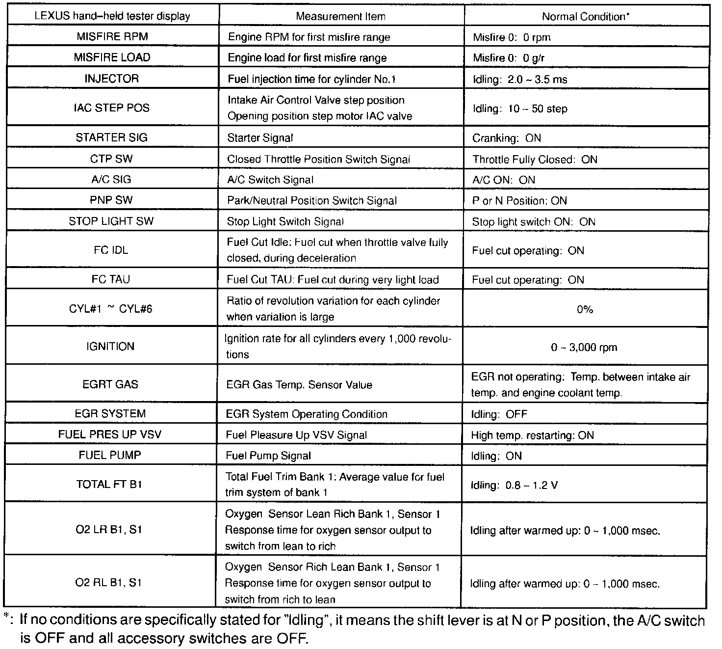 NOTICE: The values given below for "Normal Condition" are representative values, so a vehicle may still be normal even if its value from those listed here. So do not decide whether a part is faulty or not solely according to the "Normal Condition" here.(a) CARB mandated signals.