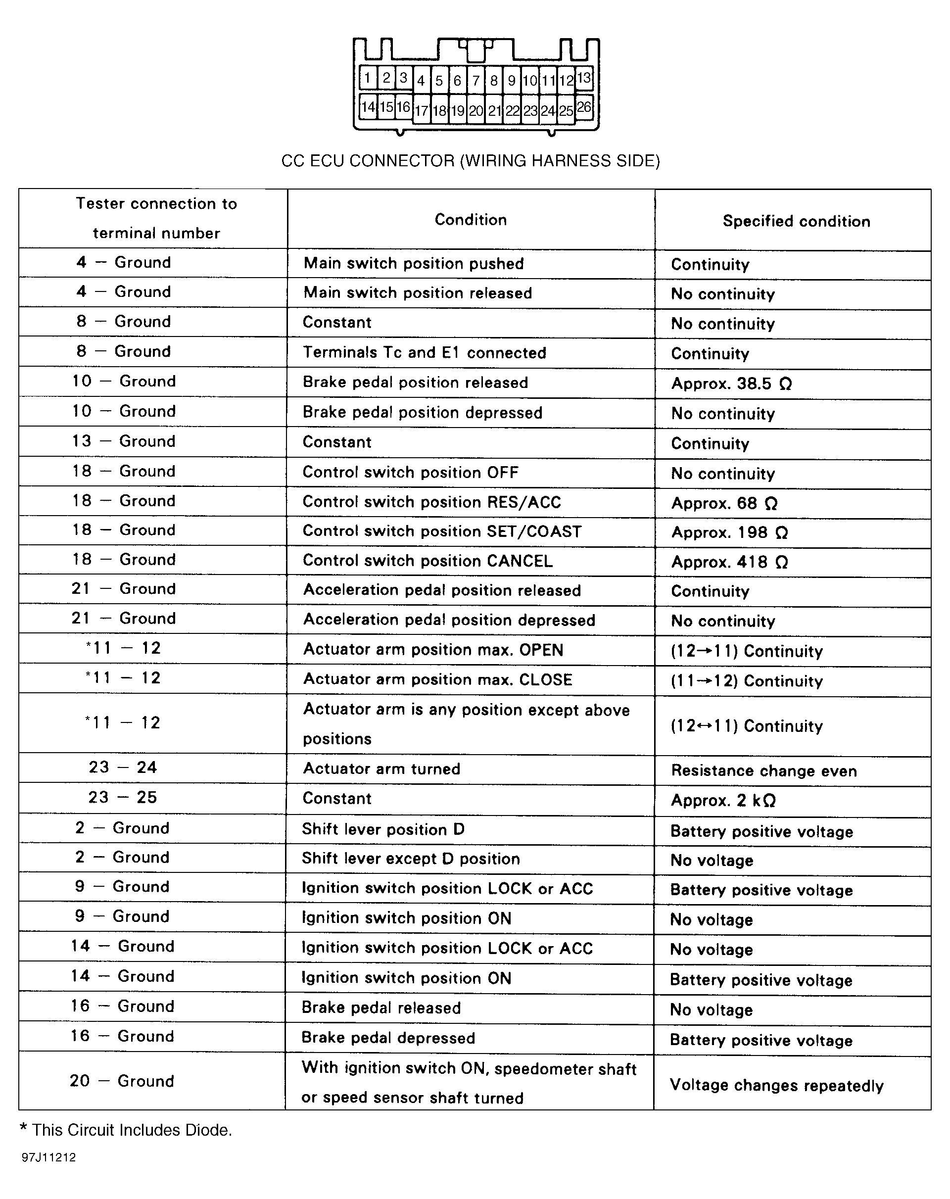 . To help identify all other cruise control related connector terminals and wire colors, see