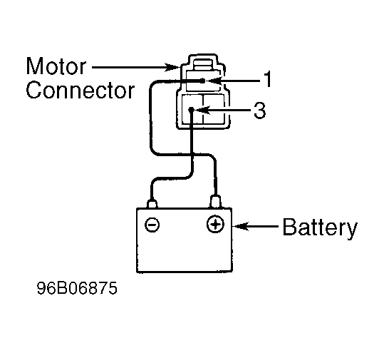 Using a 12-volt battery, connect jumper wire from positive battery terminal to terminal No. 1 of power window motor. See Fig 1. Connect jumper wire from negative battery terminal to terminal No. 3 of power window motor. Motor should operate clockwise. Reverse jumper wire positions. Motor should operate counterclockwise. If motor does not test as specified, replace motor.