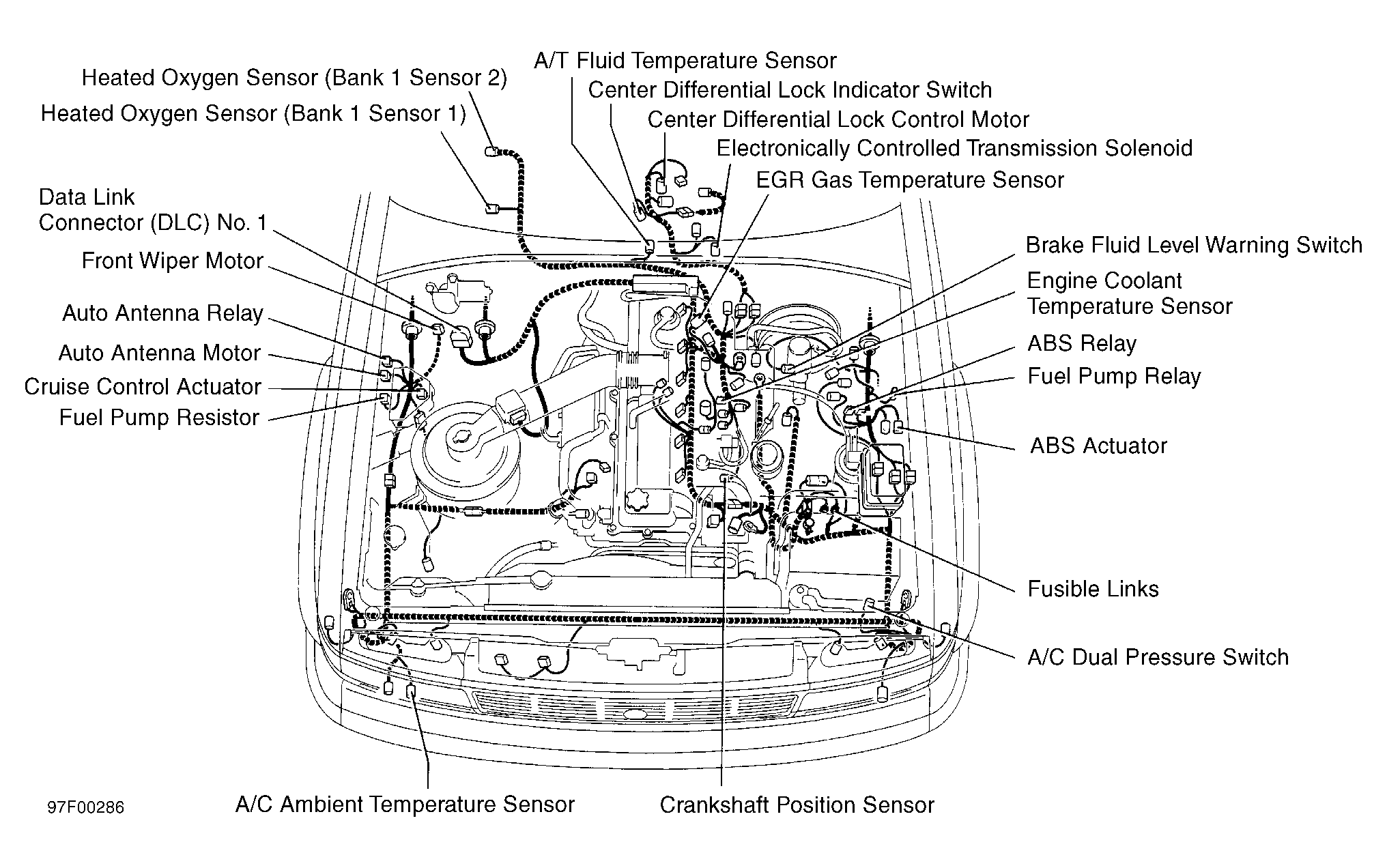 Under left instrument panel lower trim panel. See Figure. |