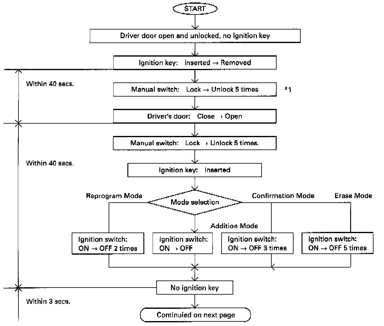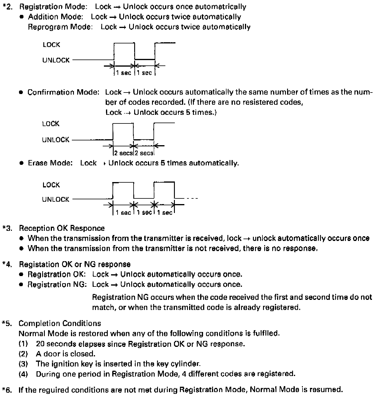 (1) Reprogram Mode: Currently registered codes are all erased and only the new recognition codes are registered.