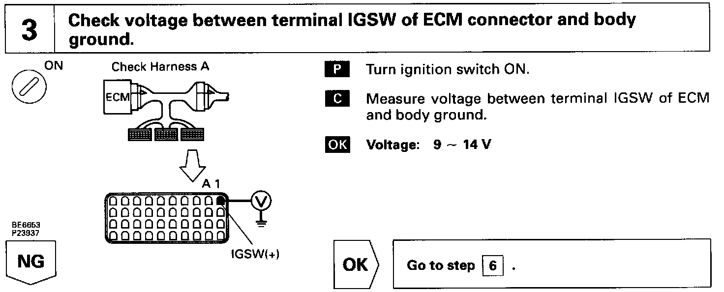 When the ignition switch is turned ON, battery positive voltage is applied to the coil, closing the contacts of the EFI main relay (Marking: EFI MAIN) and supplying power to the terminal +B of the ECM.