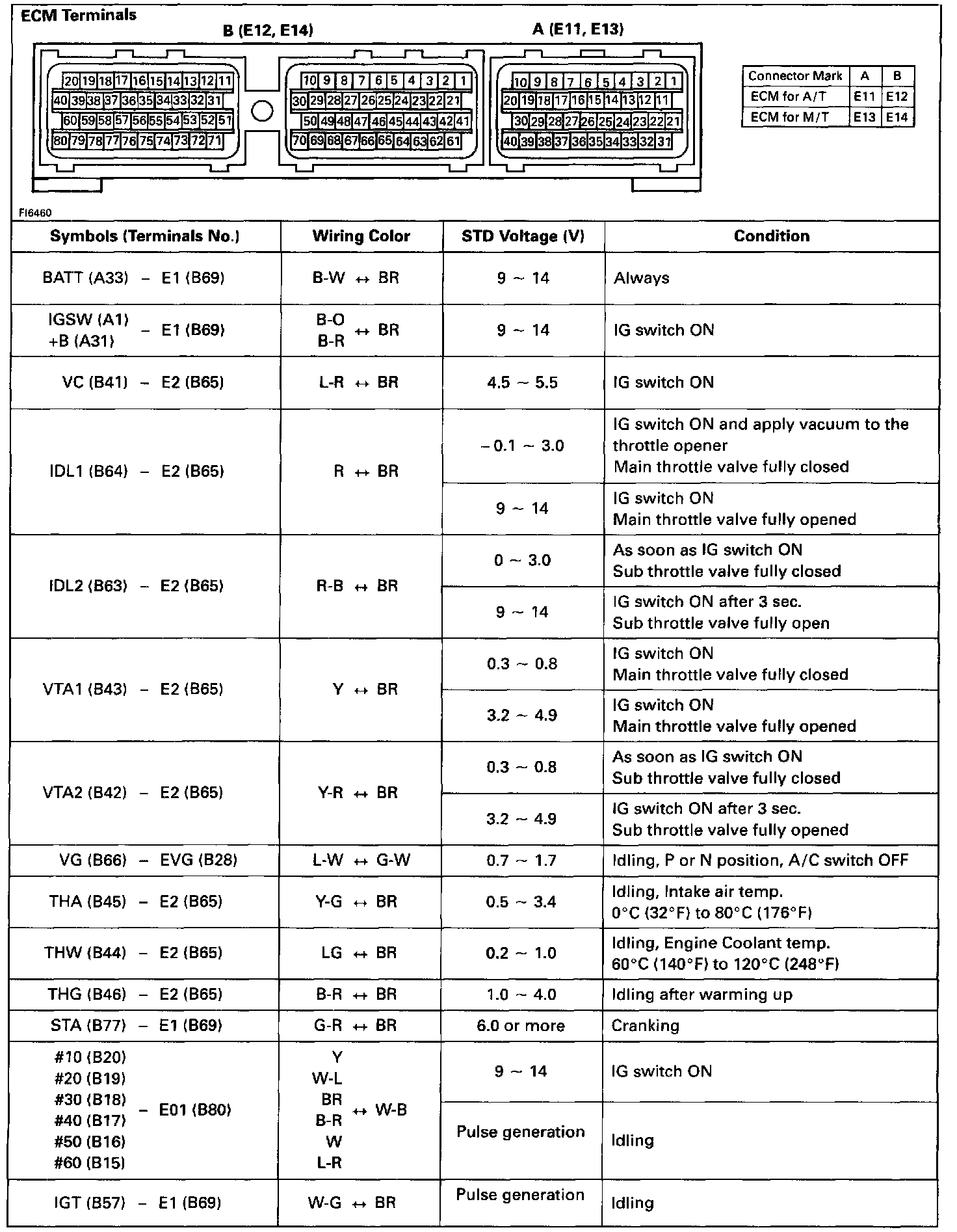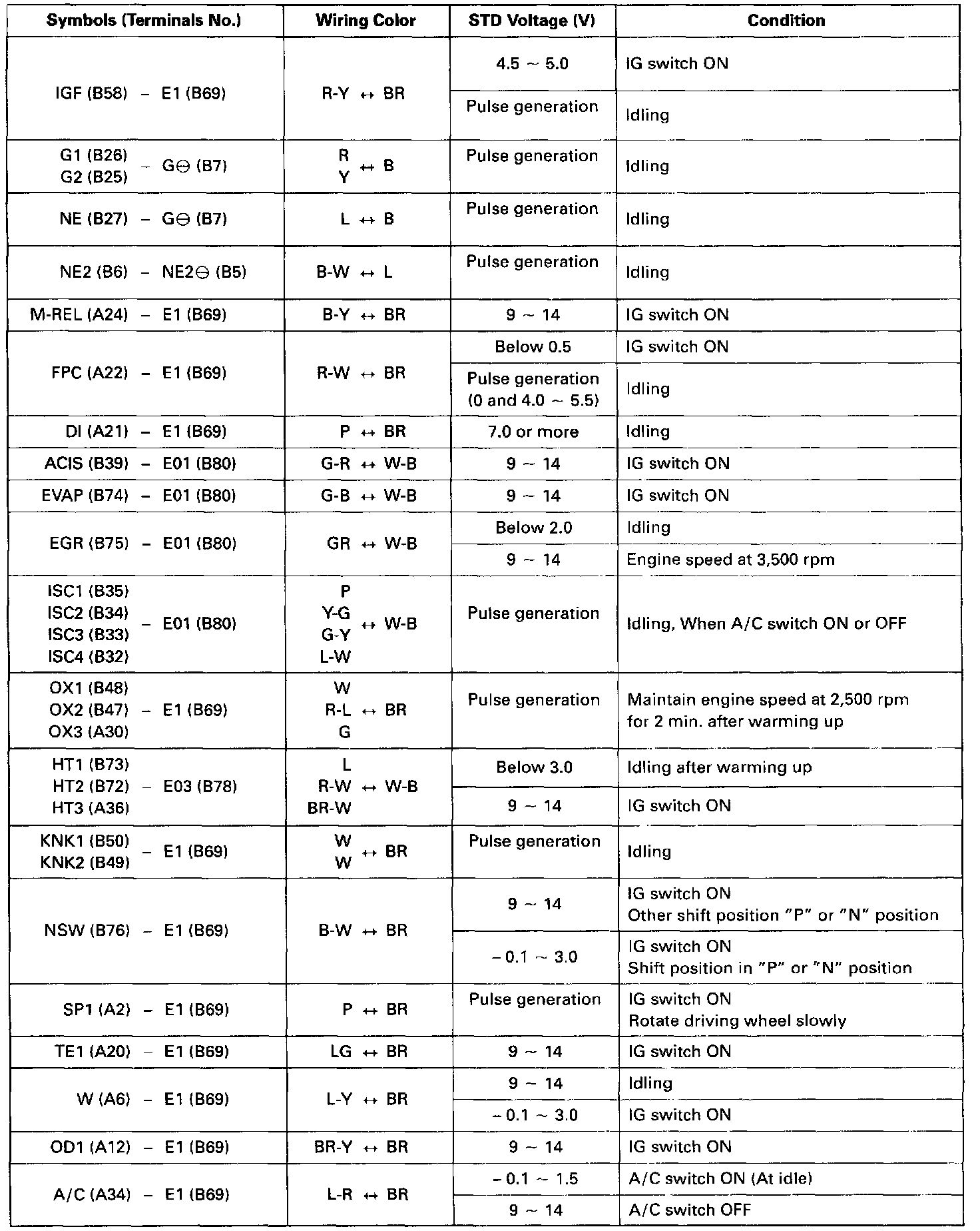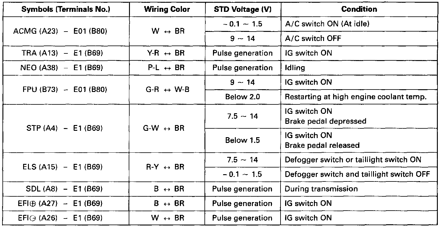 Pinout Values and Diagnostic Parameters