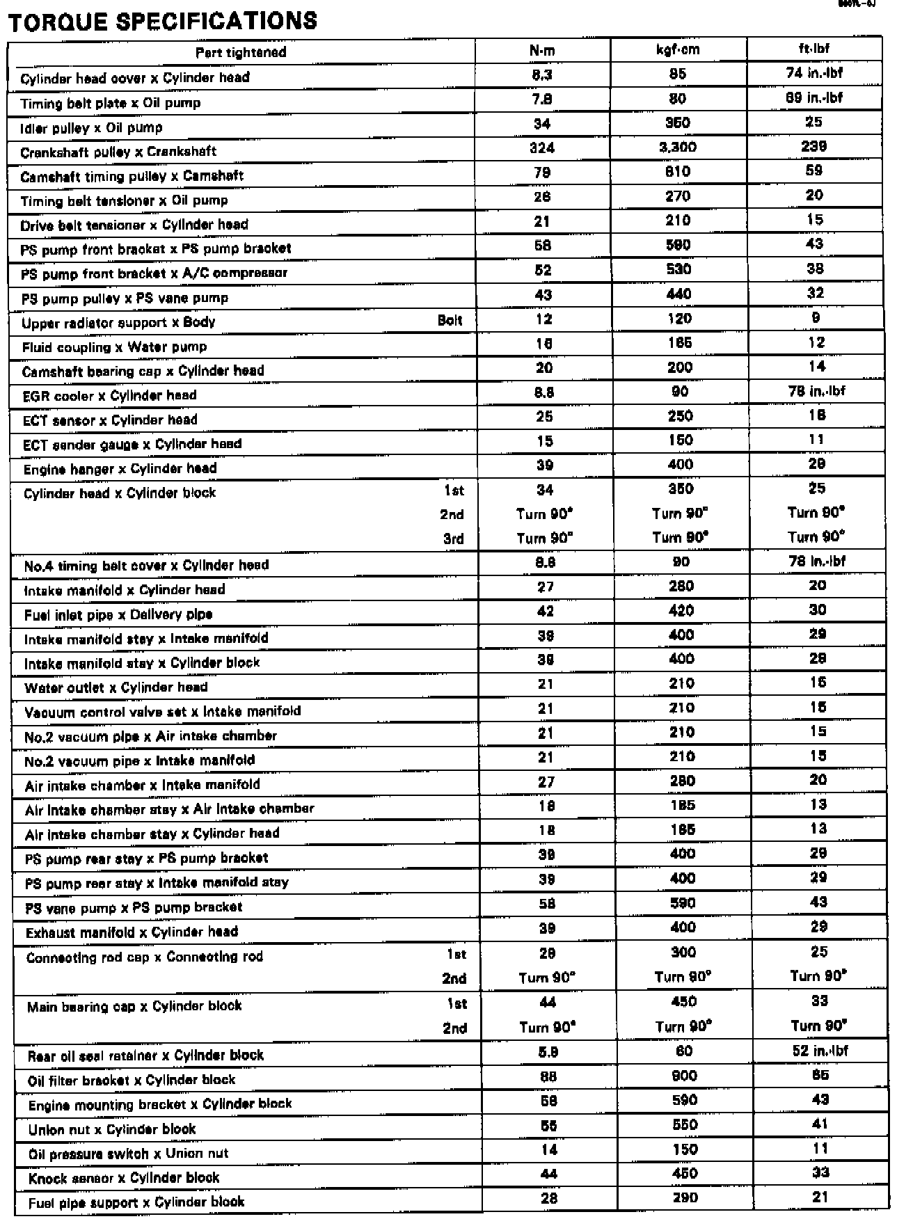 Torque Specification