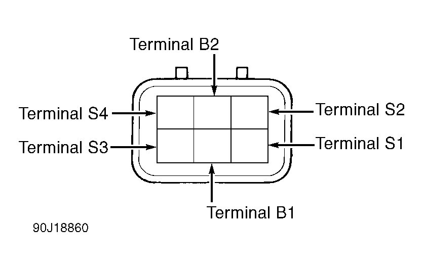 Measure resistance between terminal B1 and terminals S1 and S3. Also, measure resistance between terminal B2 and terminals S2 and S4. See
