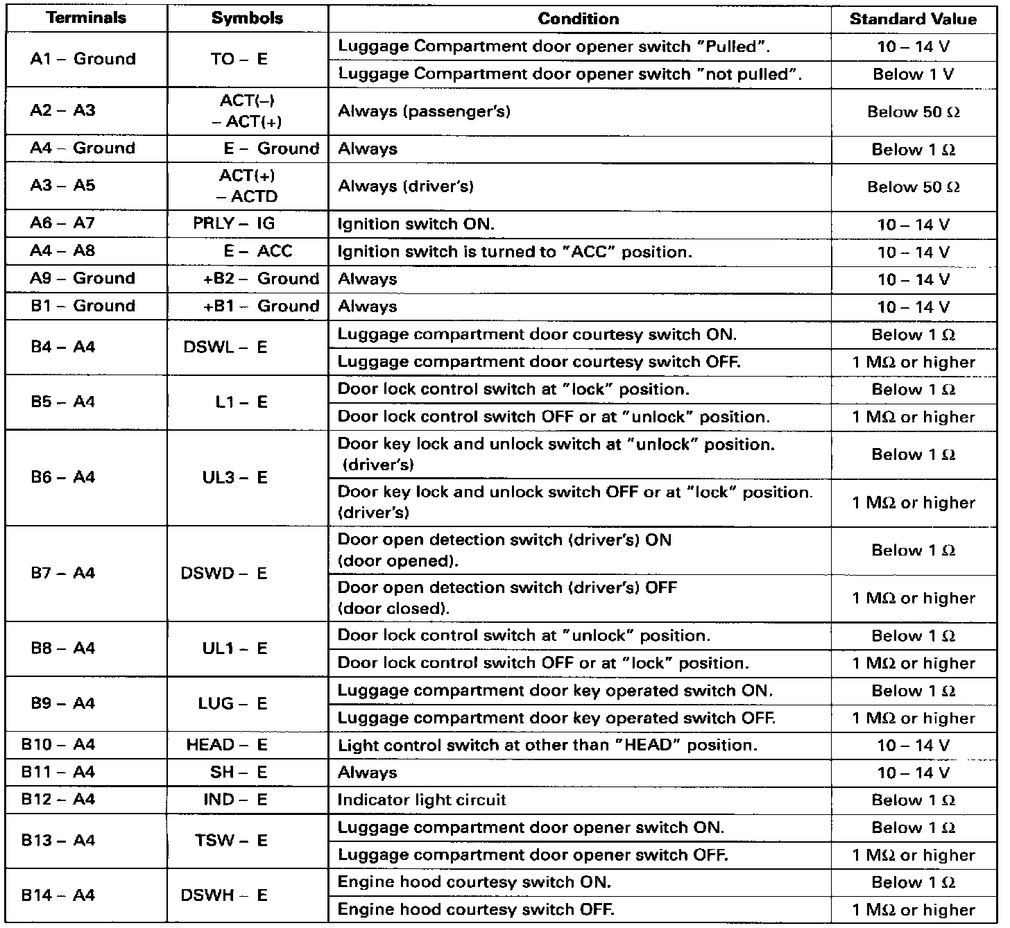 Standard Value Of ECU Terminals