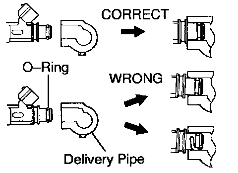 Before installing the injector, must apply spindle oil or gasoline on the place where a delivery pipe or an intake manifold touches an O-ring of the injector.
