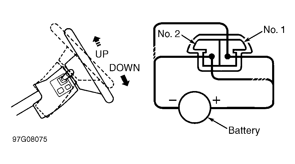- Tilt motor should move column downward. Reverse polarity of jumper wires and ensure column moves upward. If operation is as specified, go to next step. If operation is not as specified, replace tilt motor and recheck system.