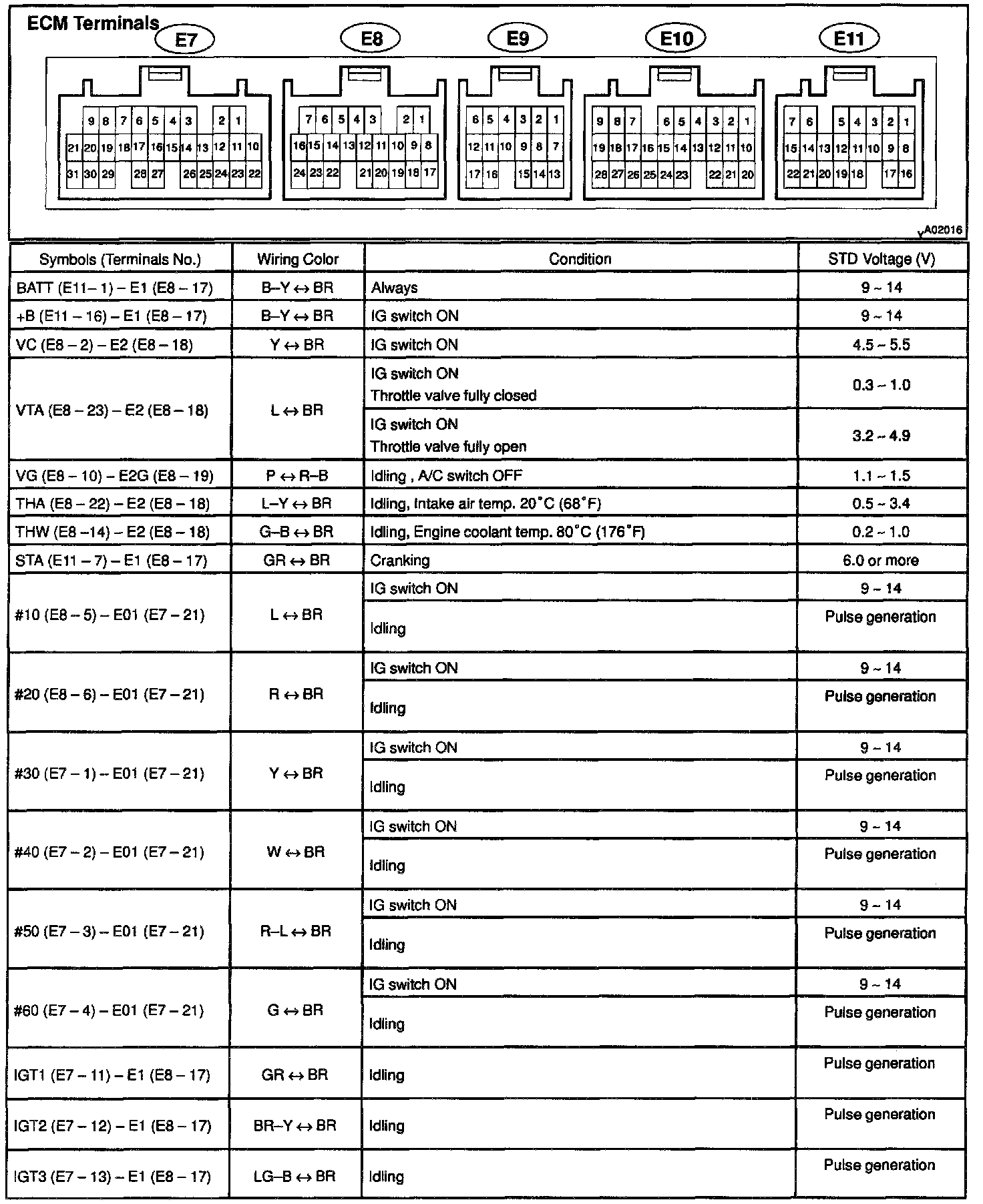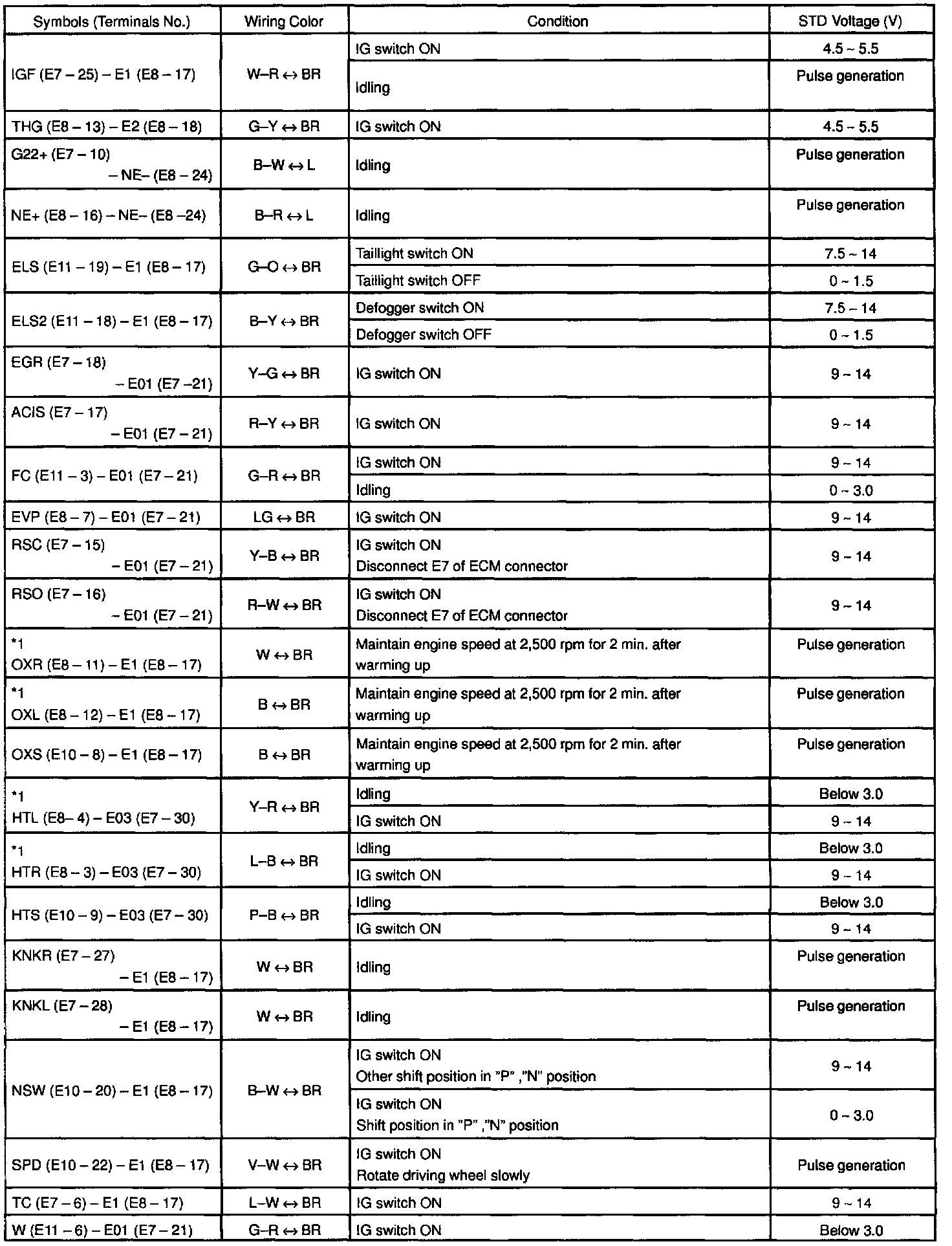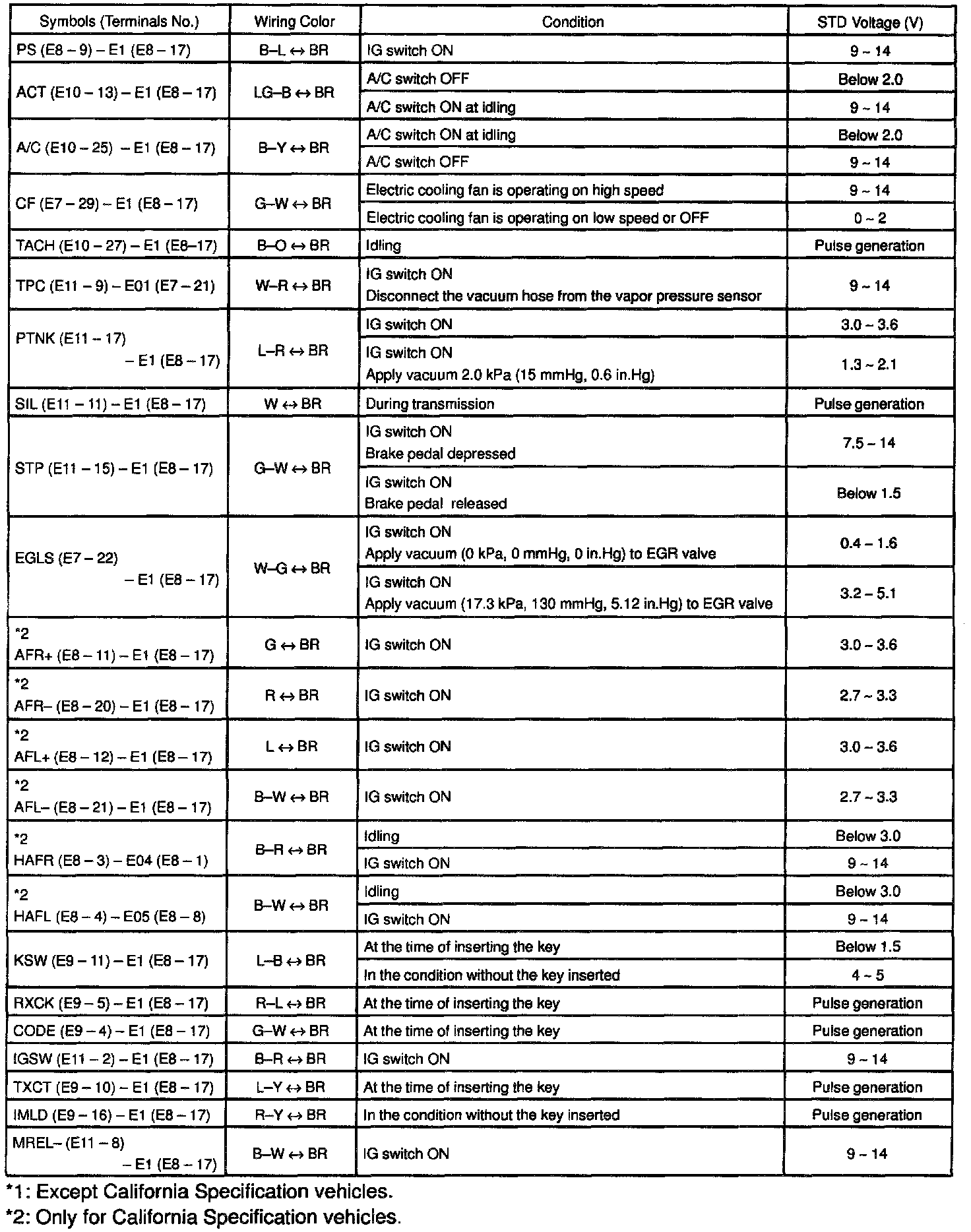 ECM Pinout Values Chart 2 Of 3: