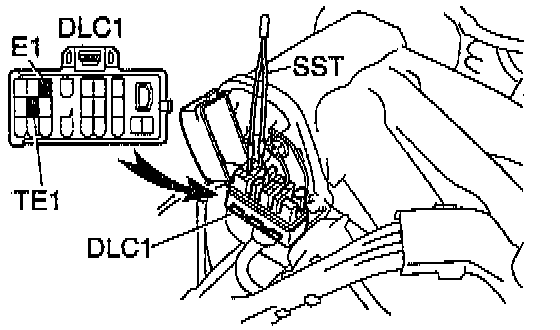 a. Using SST, connect terminals TE1 and E1 of the DLC1.
