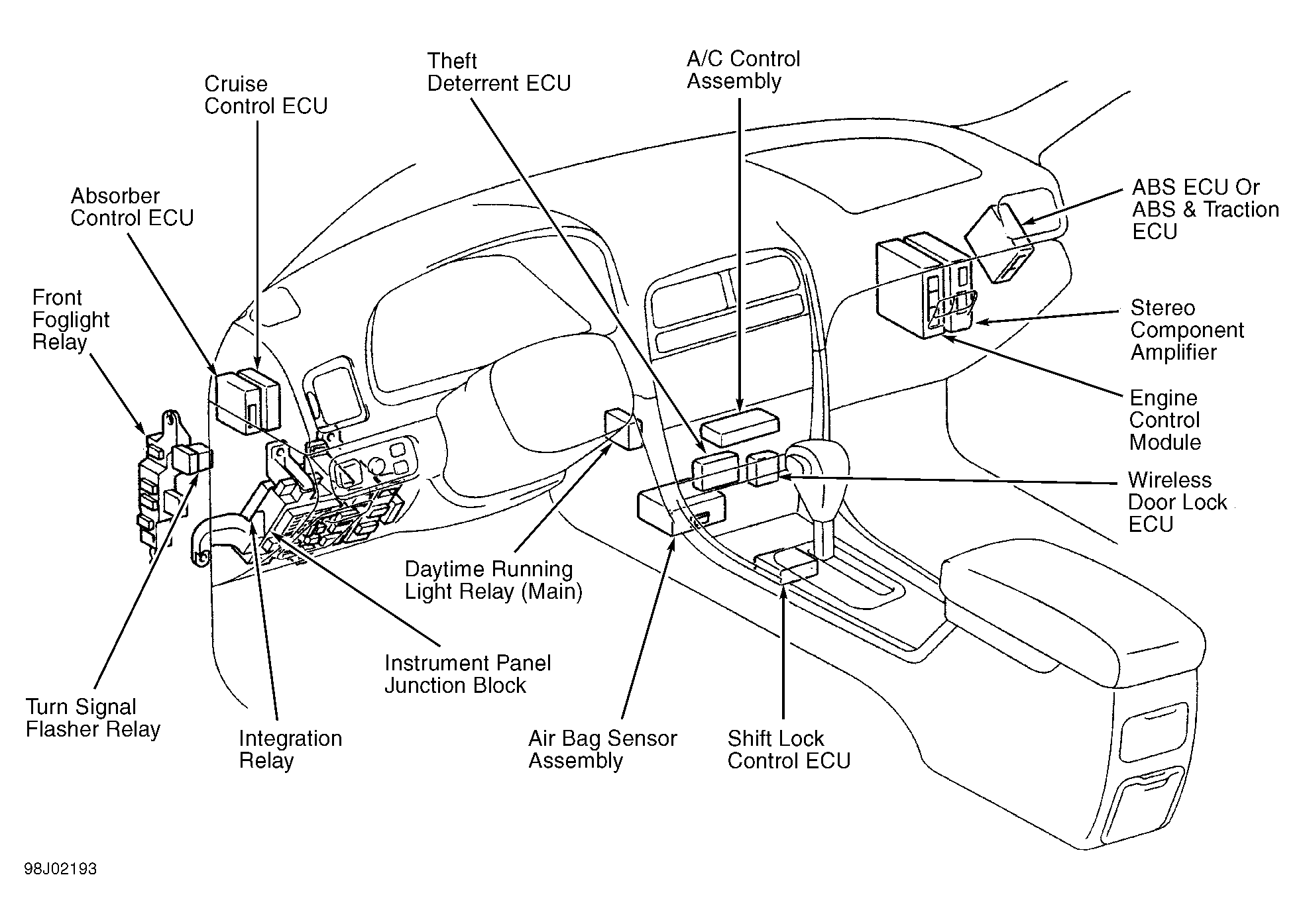 | Absorber Control ECU | Behind left side of dash. See Figure. |