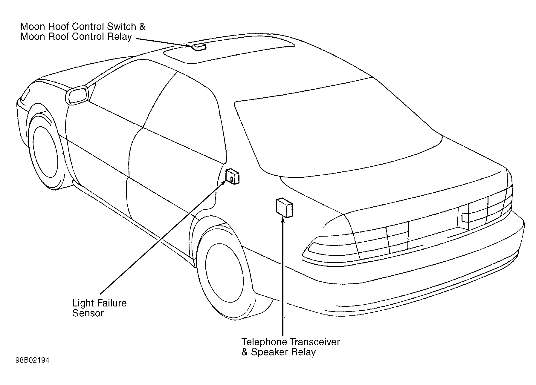 | Telephone Transceiver & Speaker Relay | On left side of luggage compartment. See Figure. |