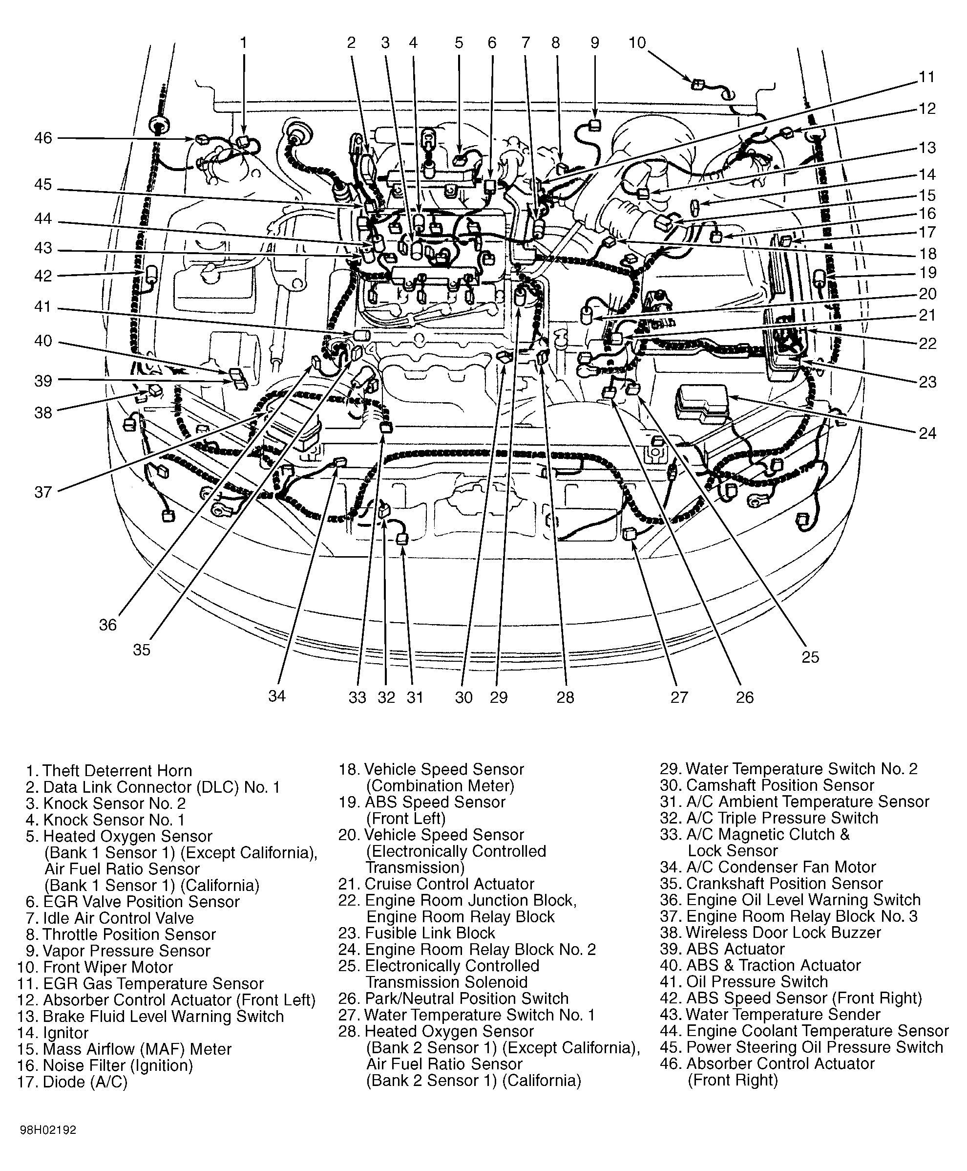 | Ignitor | In left rear of engine compartment, near air intake duct. See Figure. |