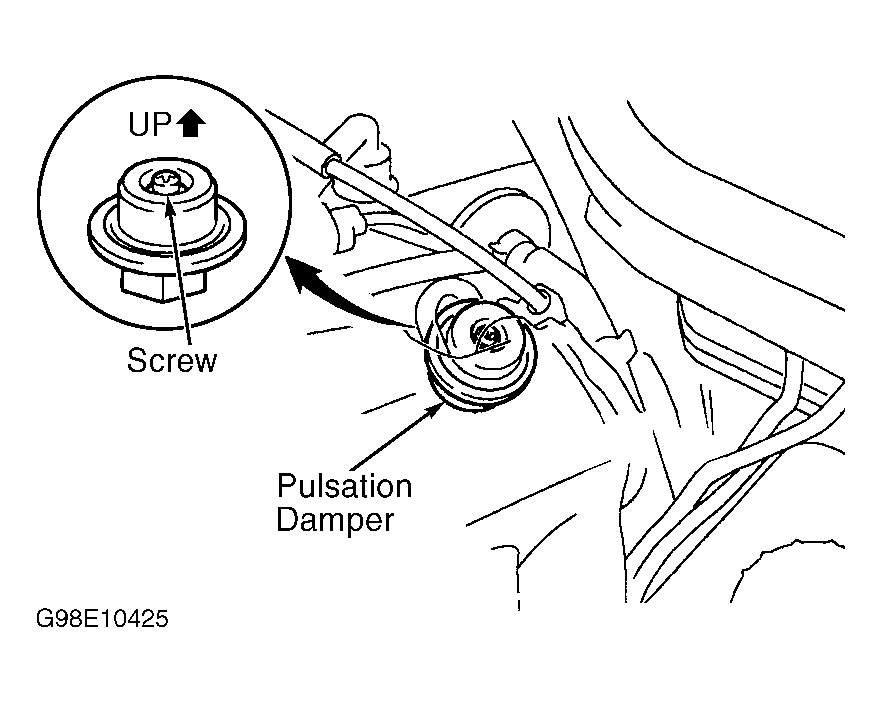 - Select ACTIVE TEST mode on scan tool. Using Lexus scan tool manufacturer's instructions, activate electric fuel pump. On all models except GS300 and SC300, fuel pump is operating if fuel pump operating sound can be heard or pulsations can be felt in fuel line near fuel filter. On GS300 and SC300, check that fuel pressure pulsation damper screw rises when fuel pump operates. See Fig 2.