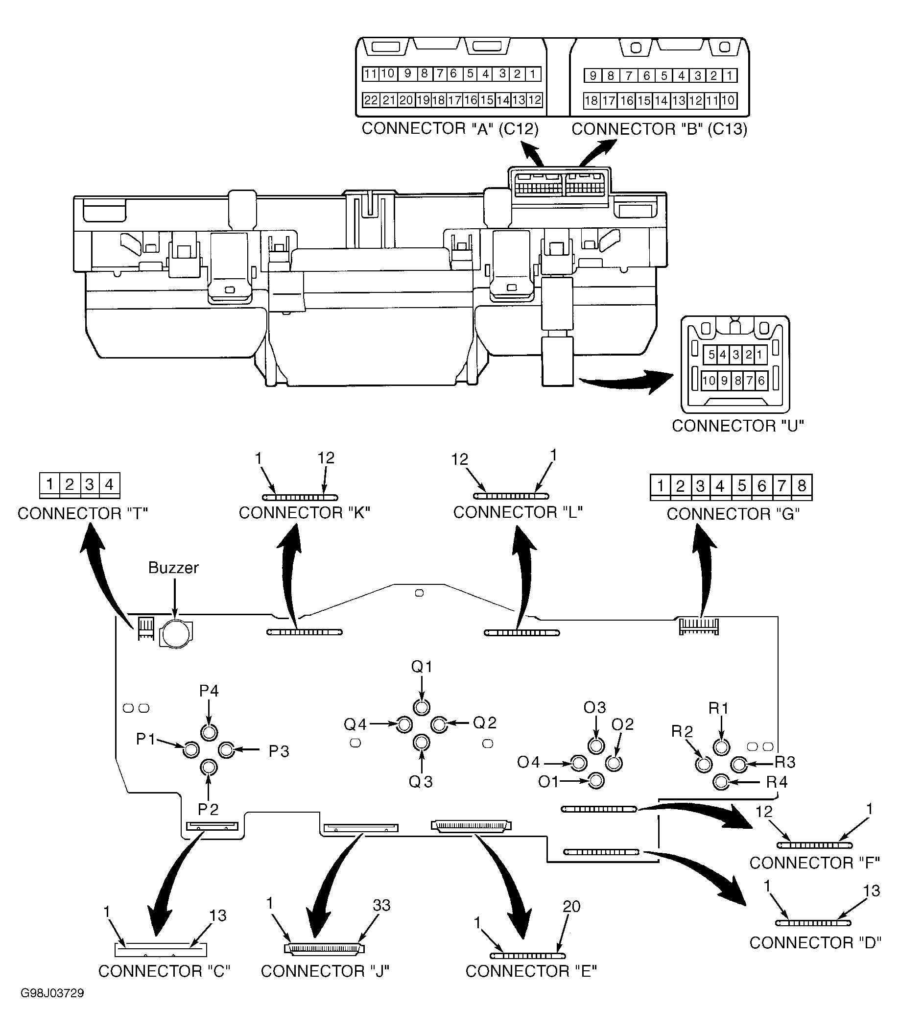 - If continuity exists on both wires, replace instrument panel ECU. If continuity does not exist or one or both wires, repair wiring as necessary.