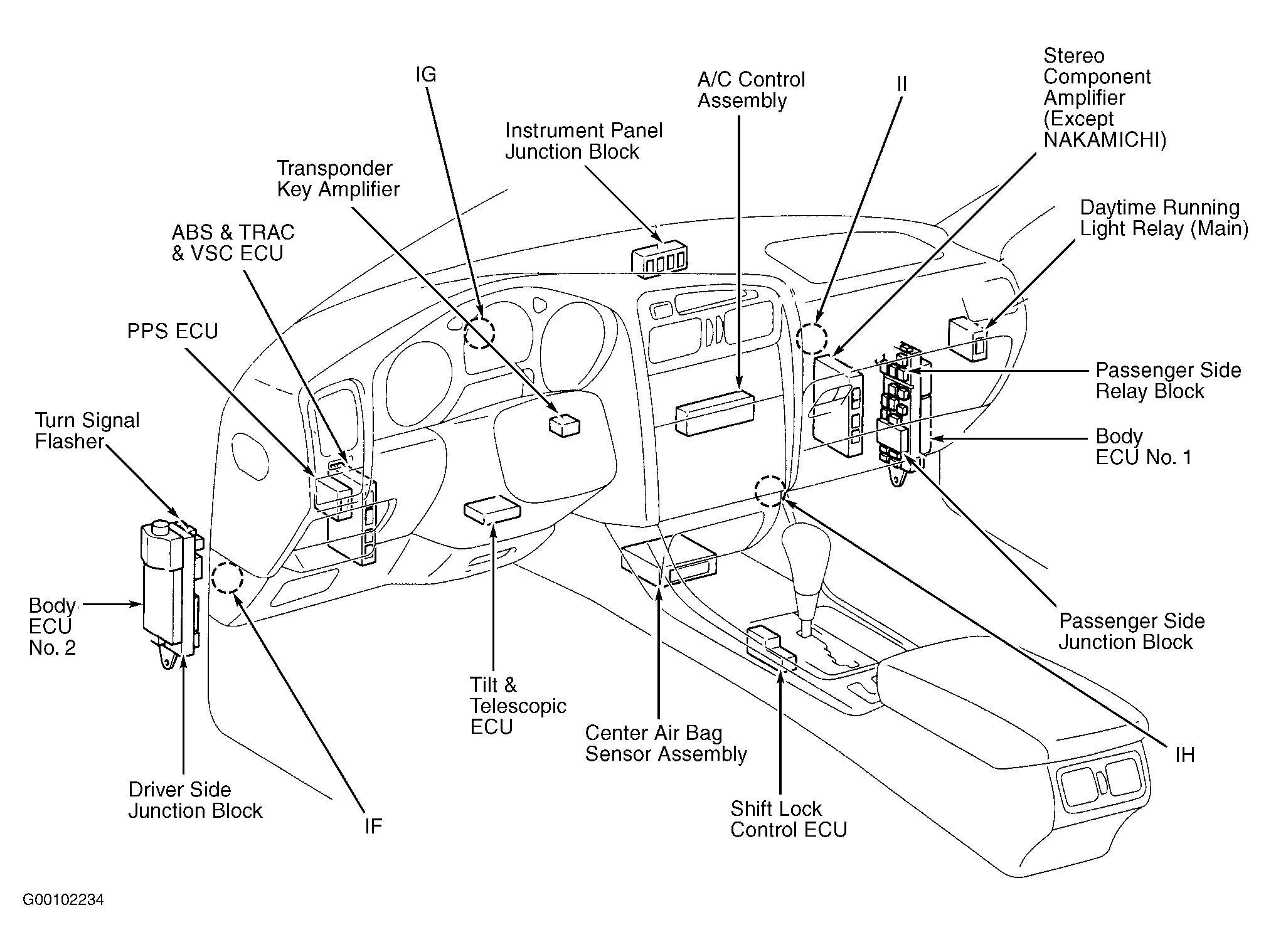 | Instrument Panel Junction Block | Behind upper center of dash. See Figure. |