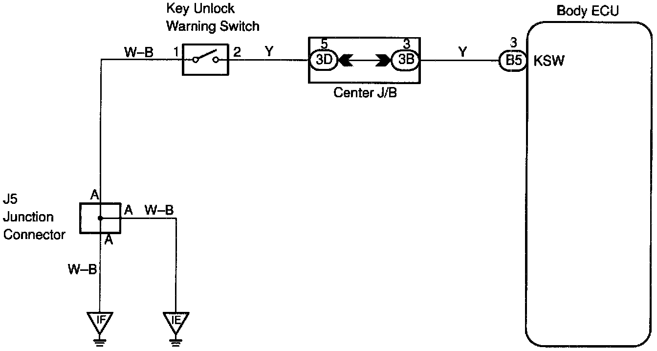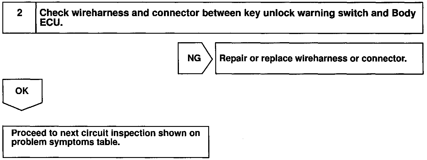 Home >> Lexus >> 1998 >> LS 400 V8-4.0L (1UZ-FE) >> Repair and Diagnosis >> Powertrain Management >> Computers and Control Systems >> Body Control Module >> Testing and Inspection >> Component Tests and General Diagnostics >> Key Unlock Warning Switch Circuit