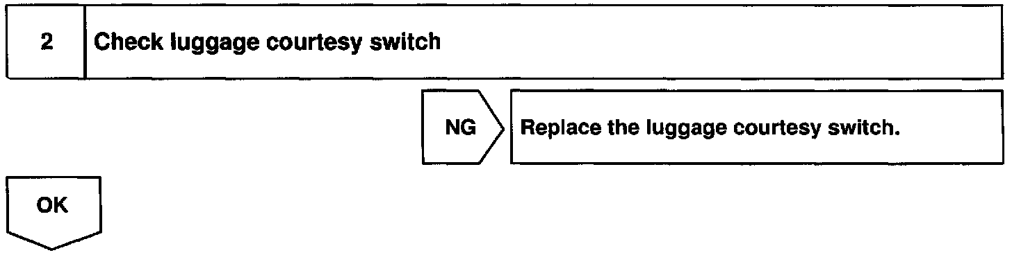 The luggage courtesy switch goes on when luggage compartment door is opened and goes off when luggage compartment door is closed.