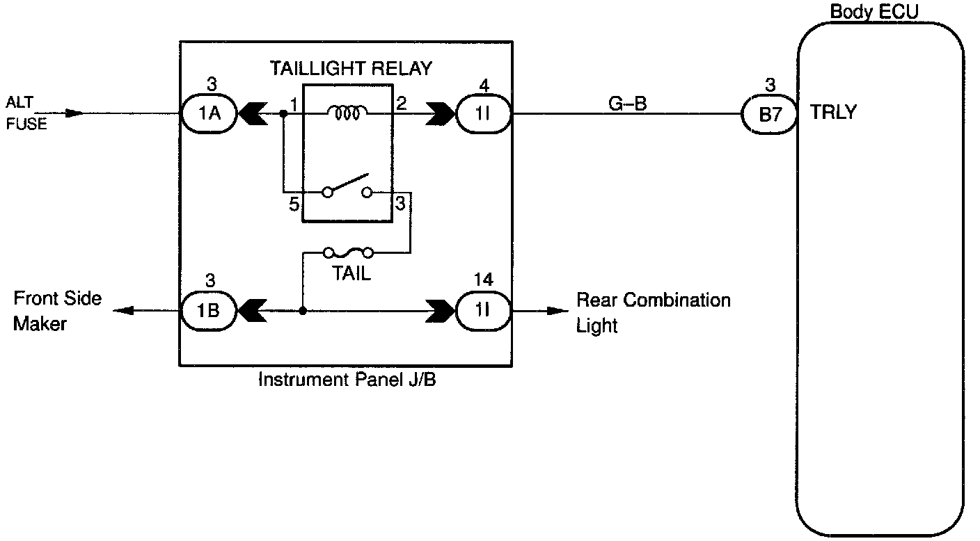 Taillight relay will be "ON" by operating the taillight switch. The transistor which activates the tail light relay has two sorts: one activates by the tail light switch for fail safe and the other activates by CPU.