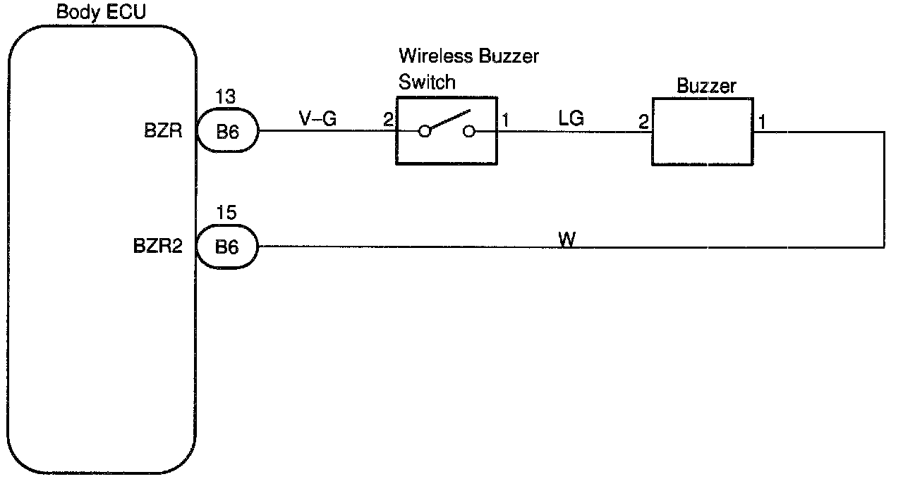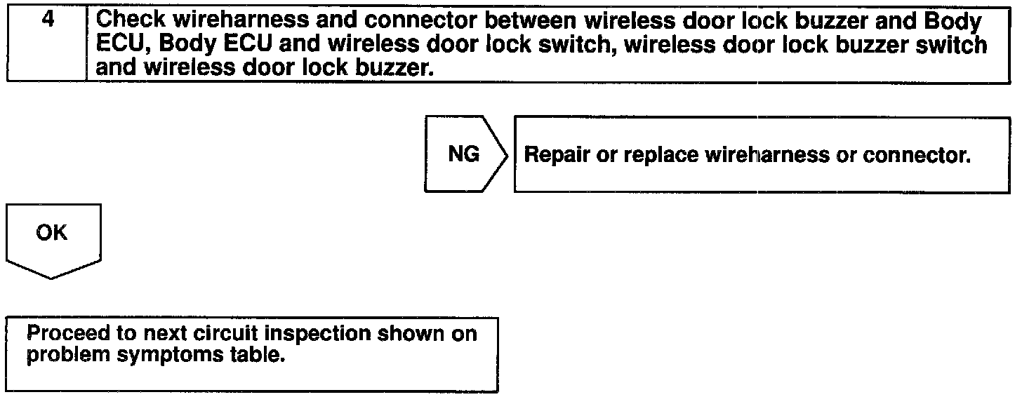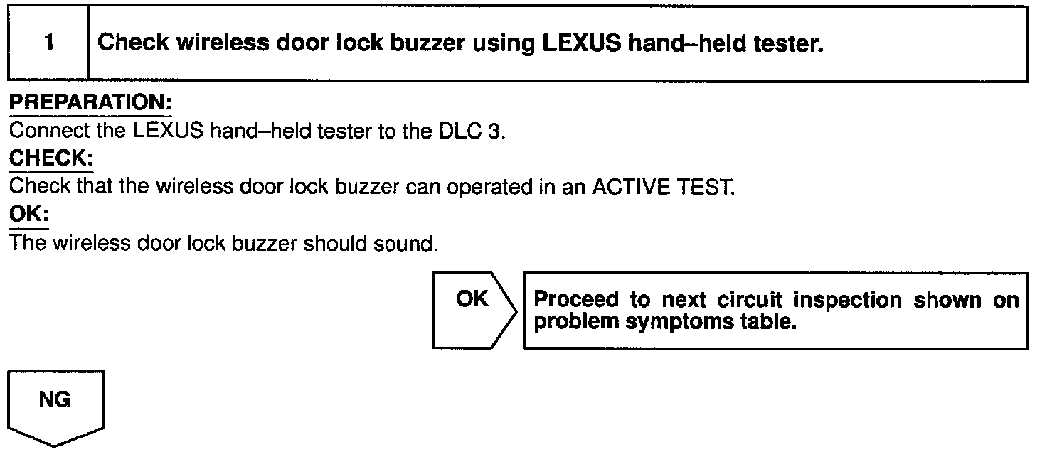Home >> Lexus >> 1998 >> LS 400 V8-4.0L (1UZ-FE) >> Repair and Diagnosis >> Powertrain Management >> Computers and Control Systems >> Body Control Module >> Testing and Inspection >> Component Tests and General Diagnostics >> Wireless Door Lock Buzzer Circuit