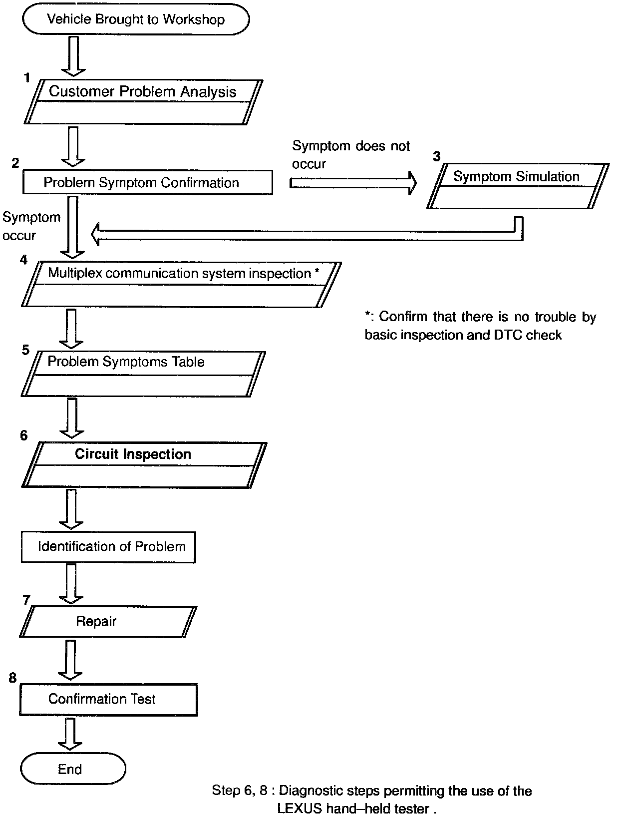 This ECU is connected to the multiplex communication system. Therefore, be sure to check that there is no troubles in the multiplex communication system before performing the trouble shooting.