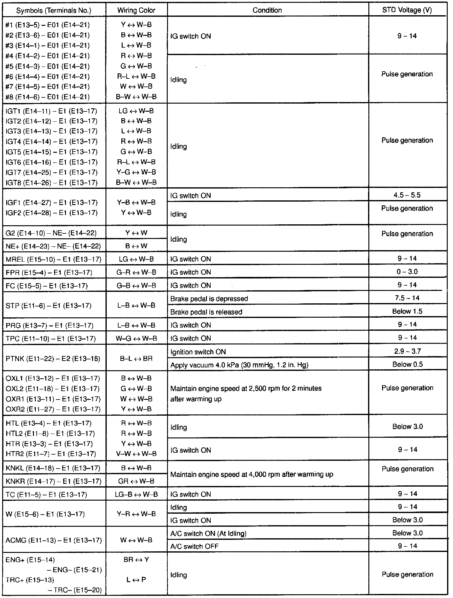 ECM Pinout Values Chart 3 Of 3: