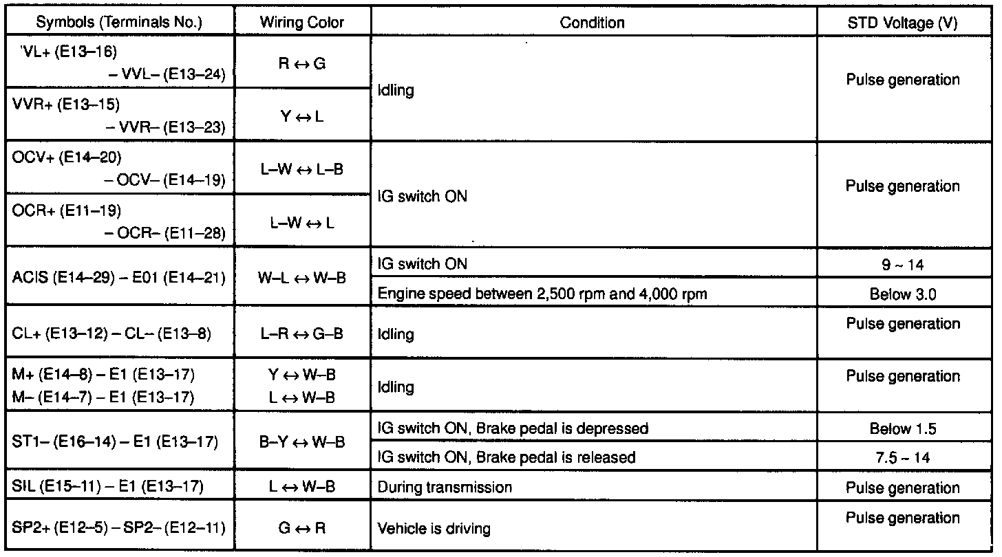 ECM Pinout Values Chart 2 Of 3: