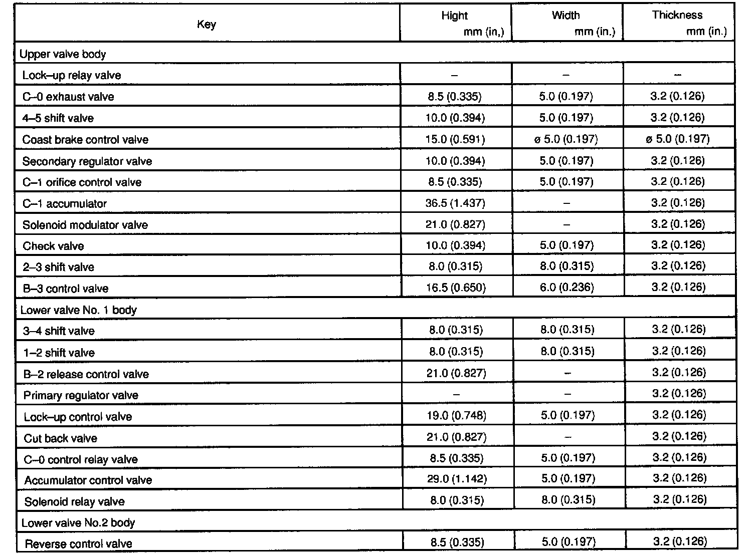 Valve Body Key