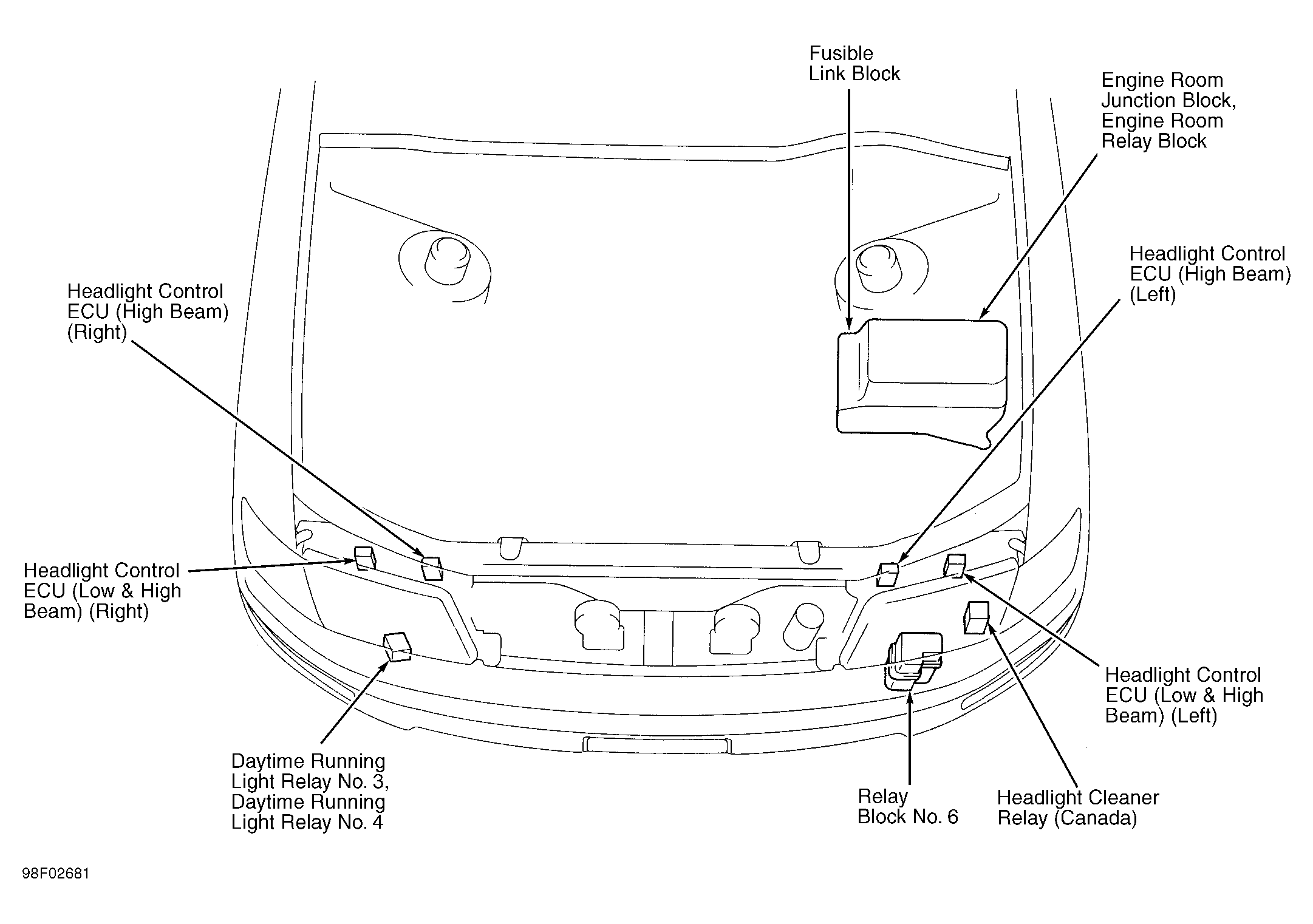 | Headlight Control ECU (Low & High Beam) (Left) | Behind left headlight. See Figure. |