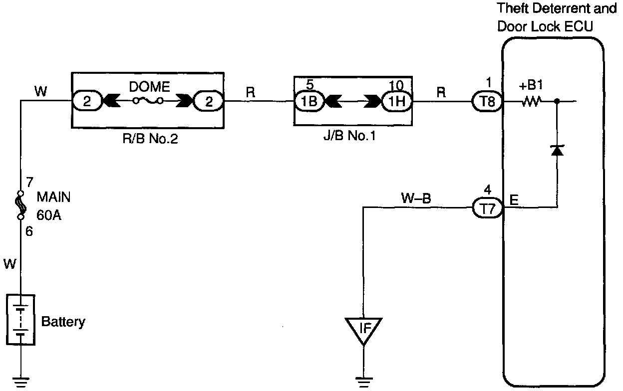 This circuit provides power to operate the theft deterrent and door lock ECU.