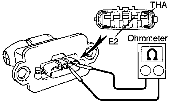 Using an ohmmeter, measure the resistance between terminals THA and E2.