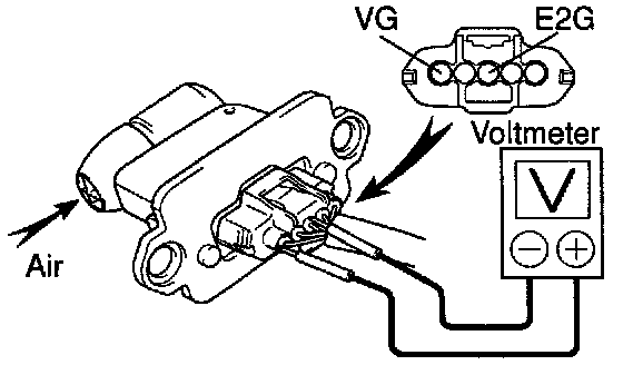 (d) Using a voltmeter, connect the positive (+) tester probe to terminal VG, and negative (-) tester probe to terminal E2G.