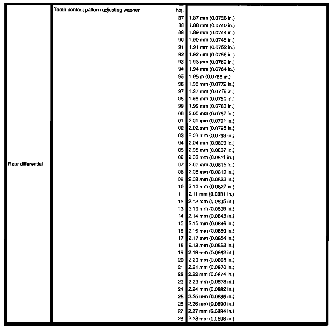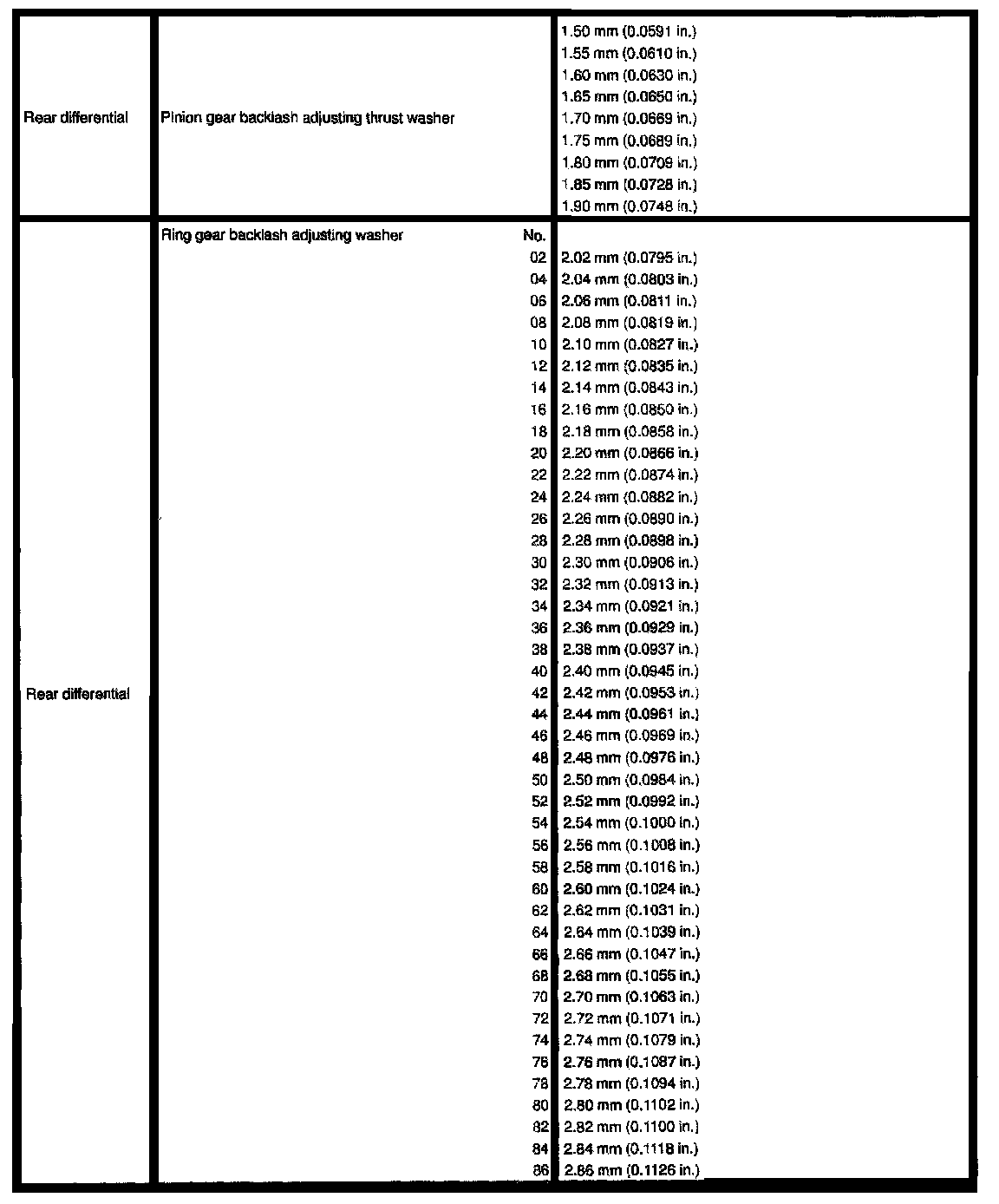 Rear Wheel Drive, Differential Ring Gear / Pinion Backlash: